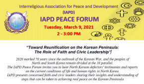 The Third Interreligious Association for Peace and Development (IAPD) Peace Forum took place virtually on March 9, 2021, under the...